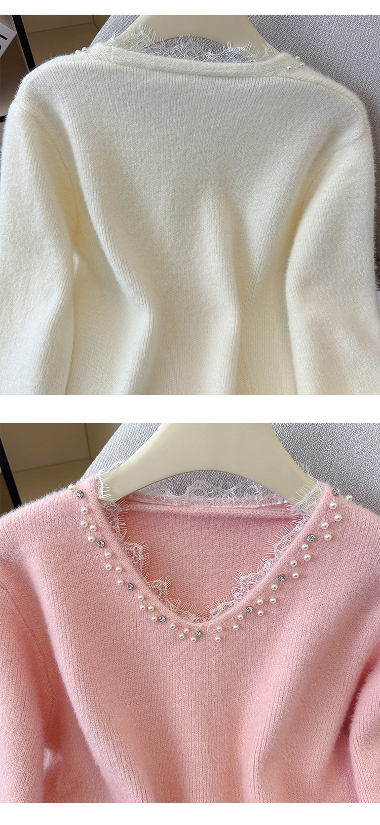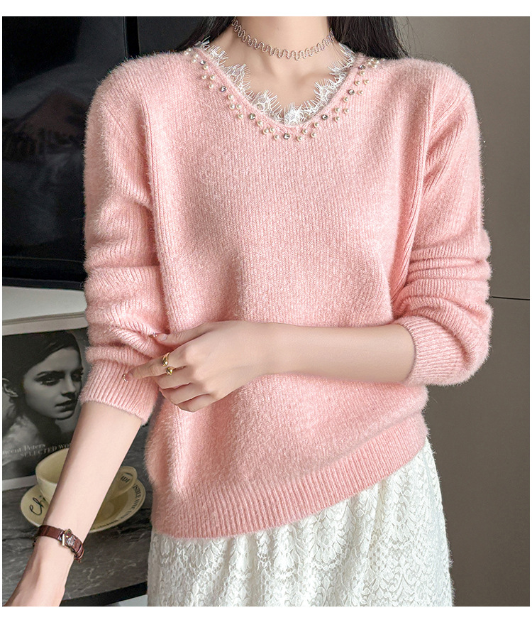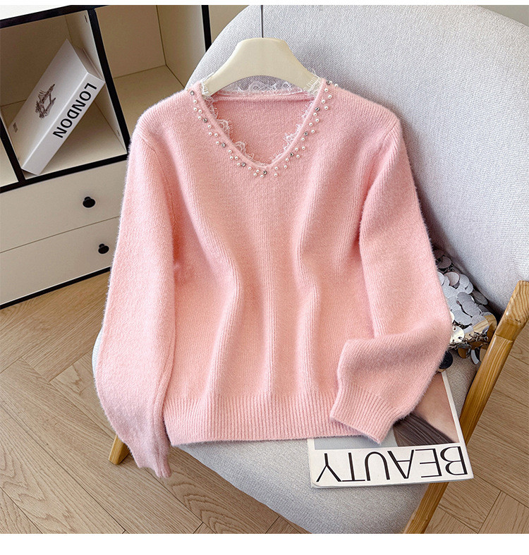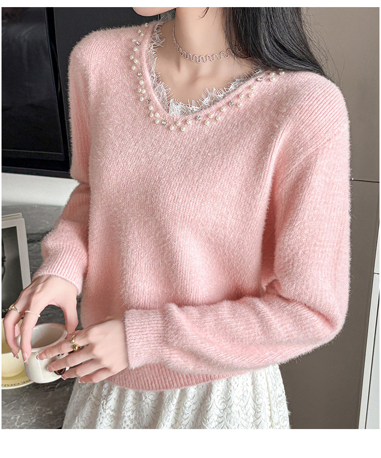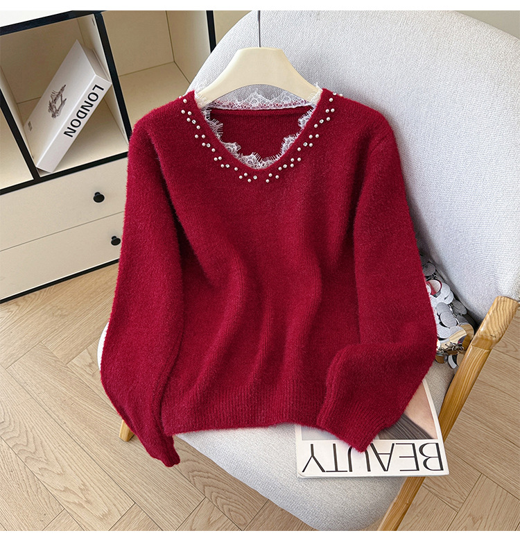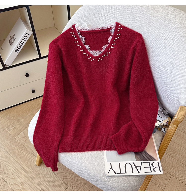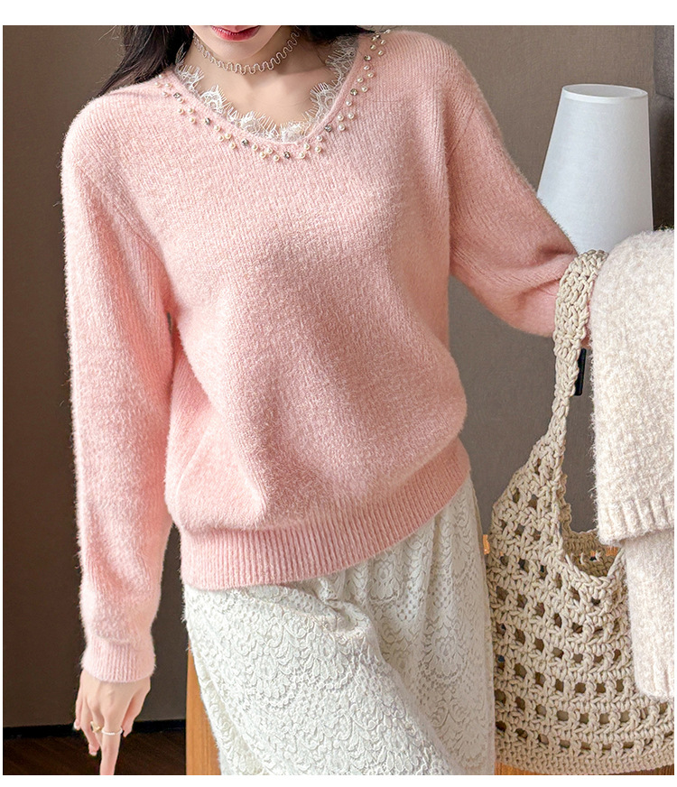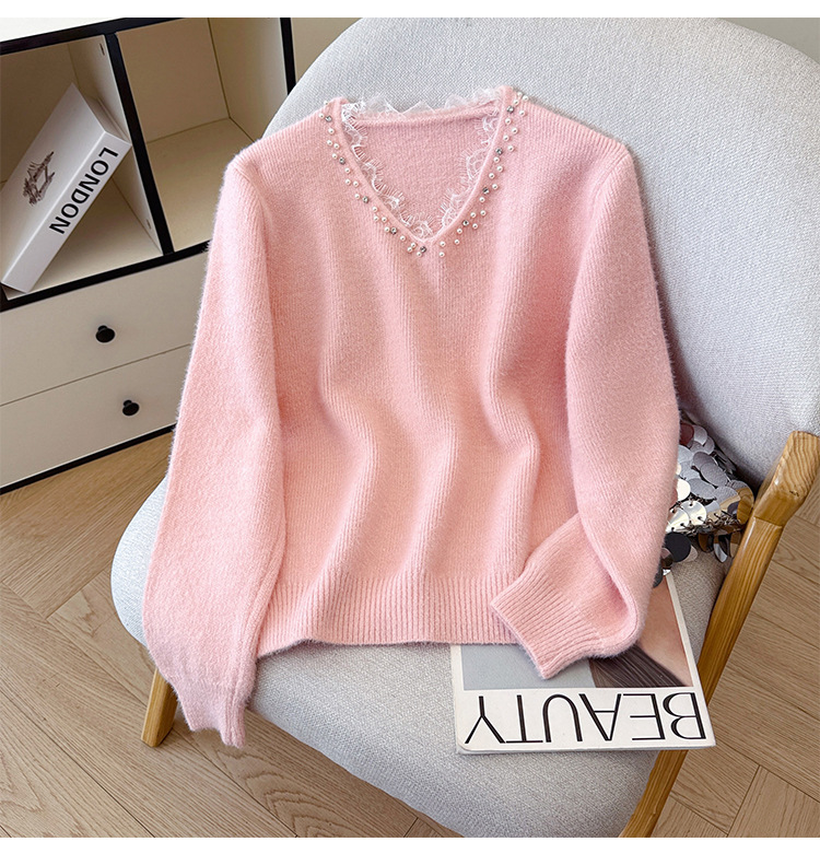 Beaded Lace Trim V-Neck Knit Cardigan for Women
