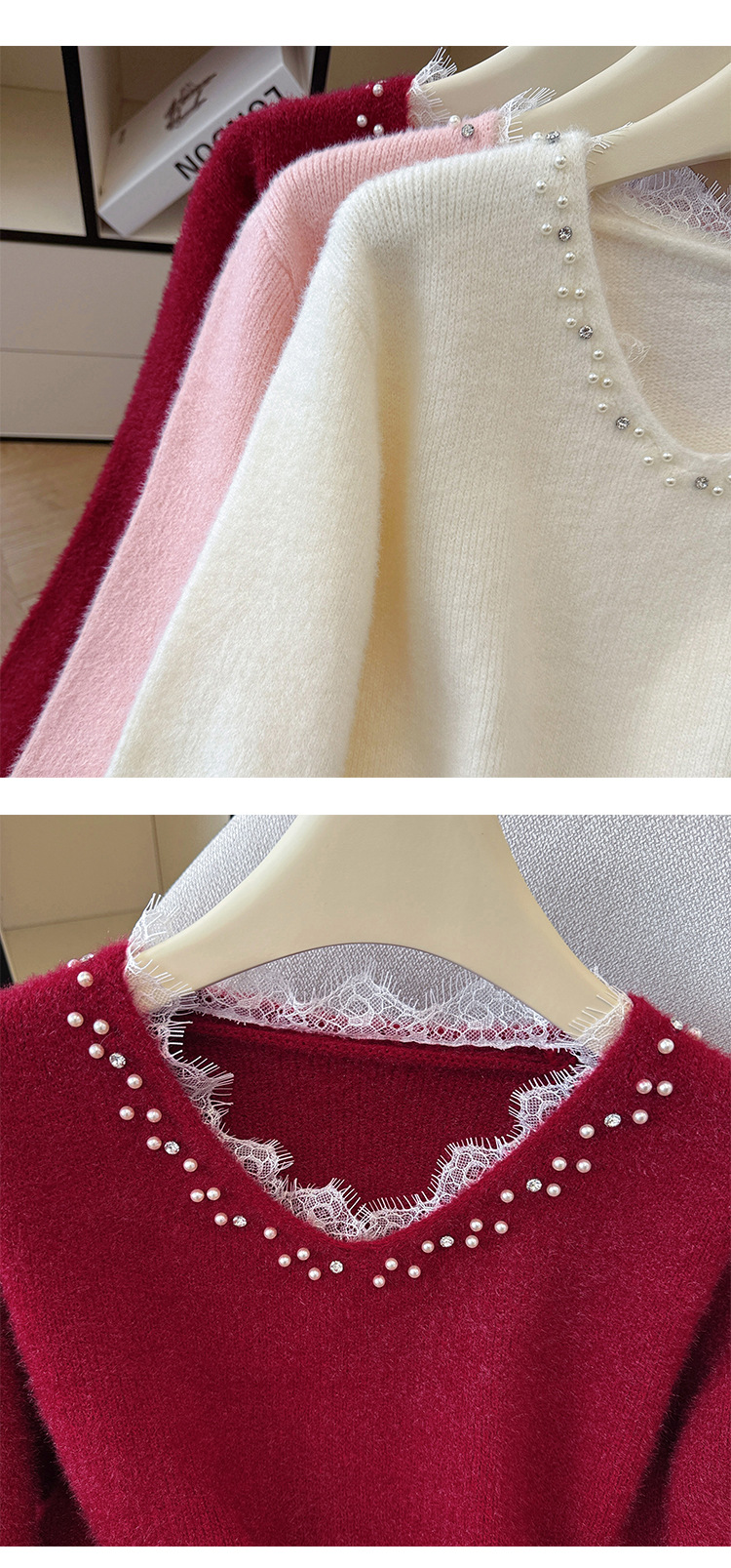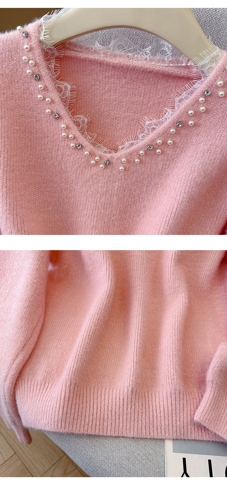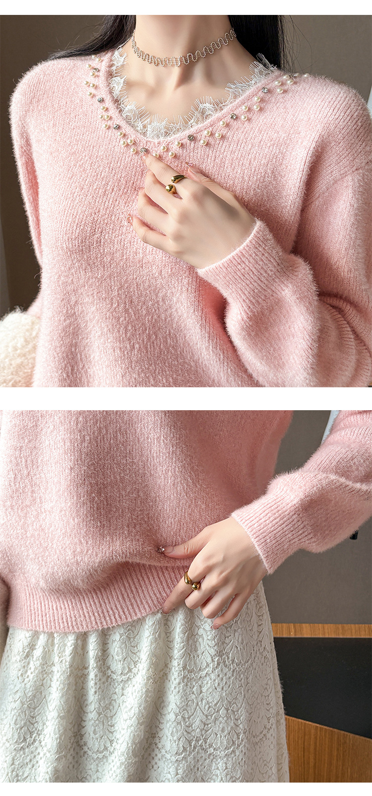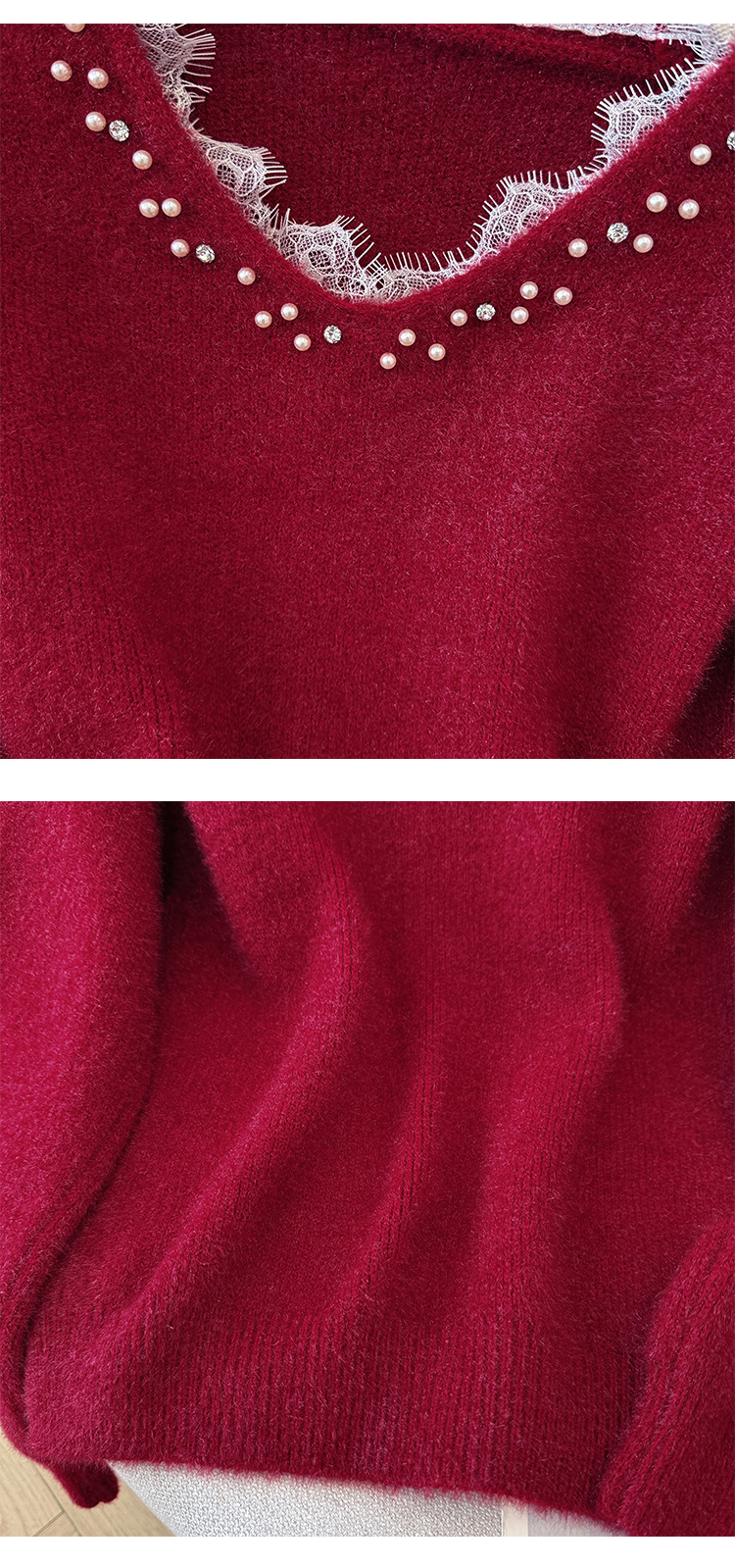 Beaded Lace Trim V-Neck Knit Cardigan for Women
