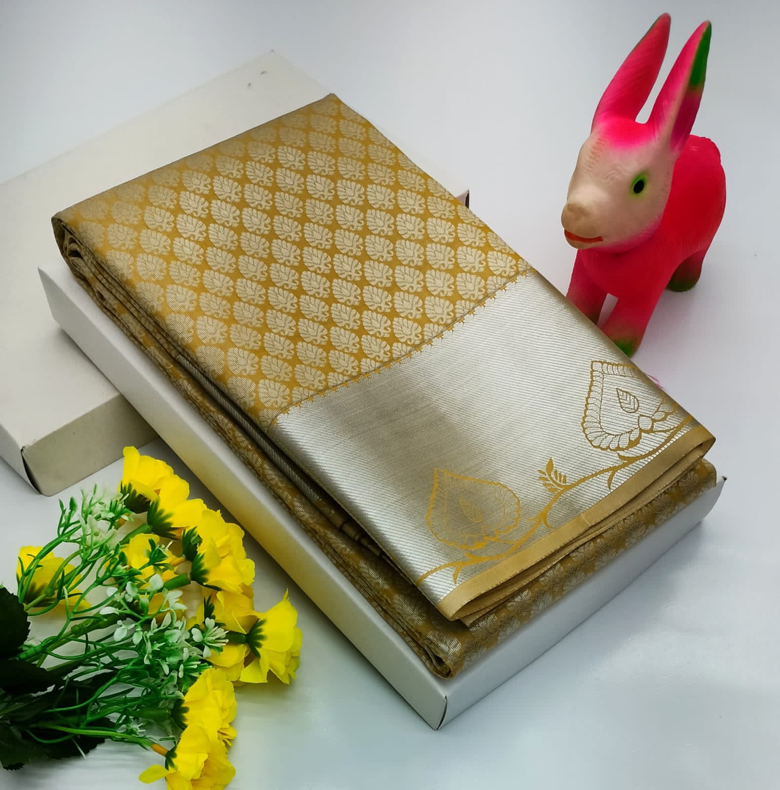 Weaving: Gold Zari Butta + Contrast Rich Pallu
