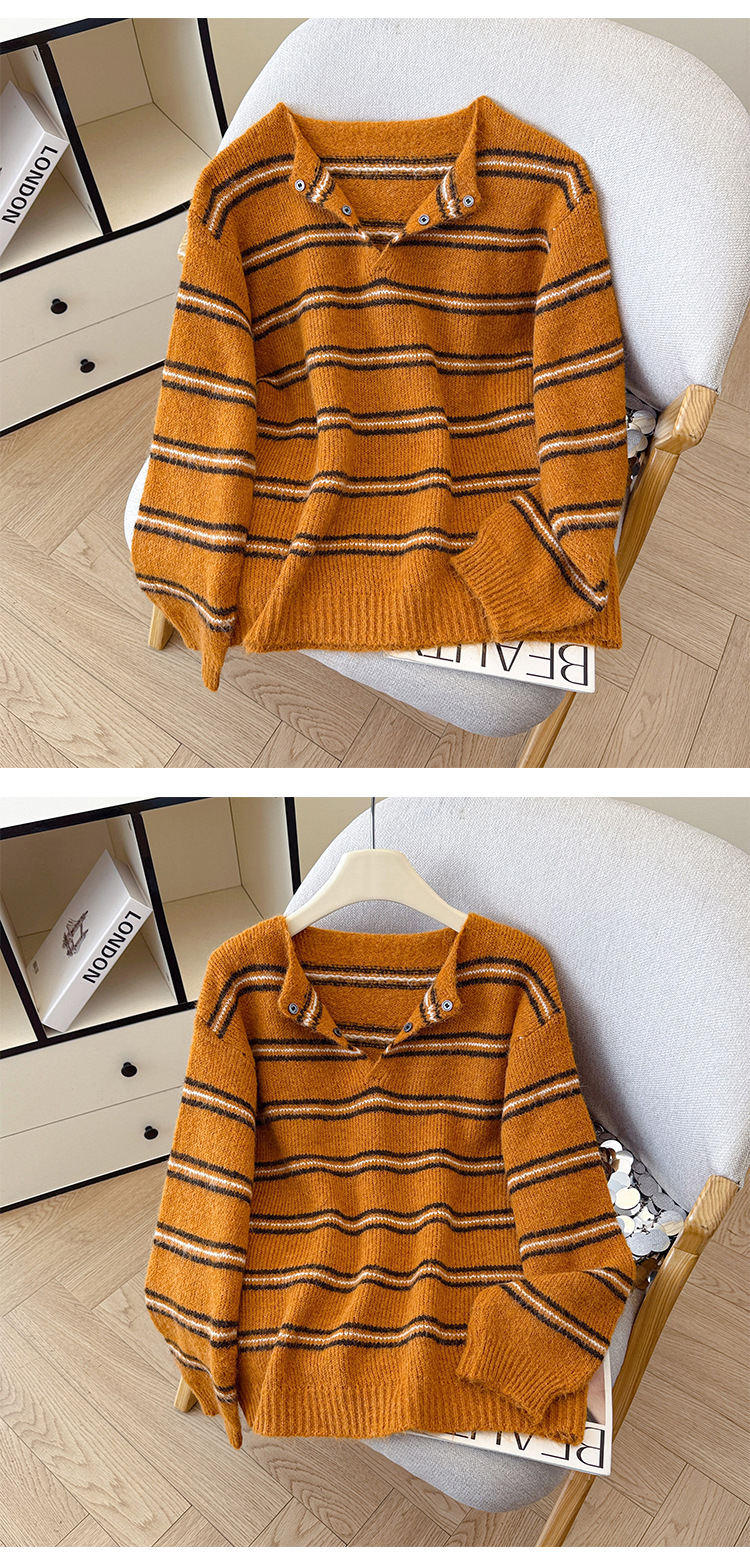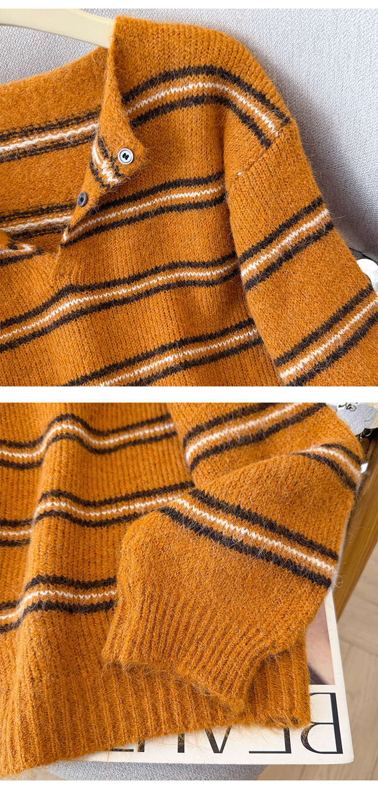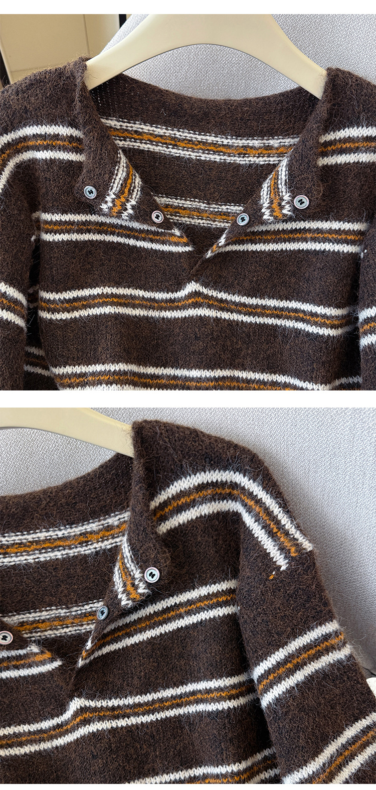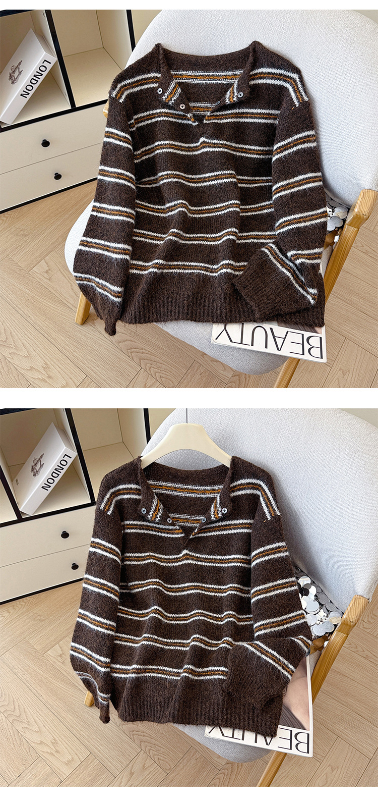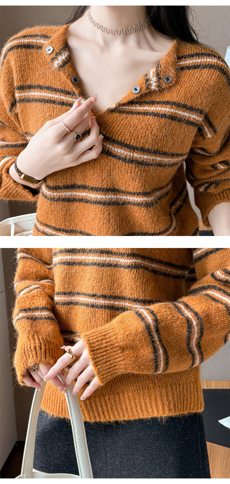 Chic Color-blocked Half-open Collar Knit Sweater for Women