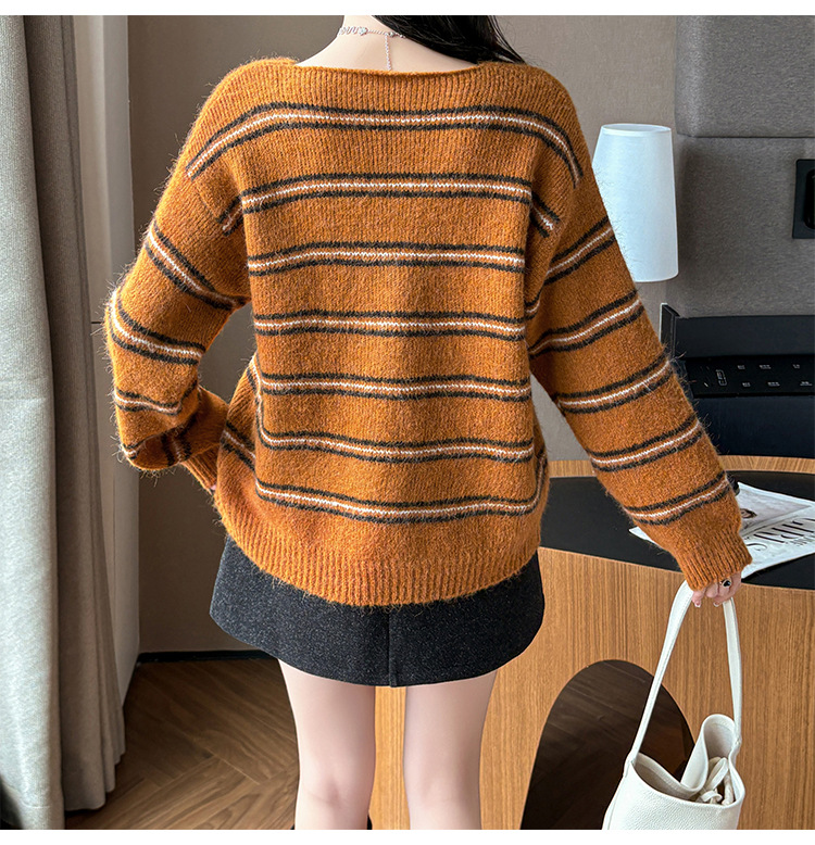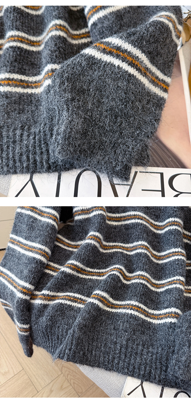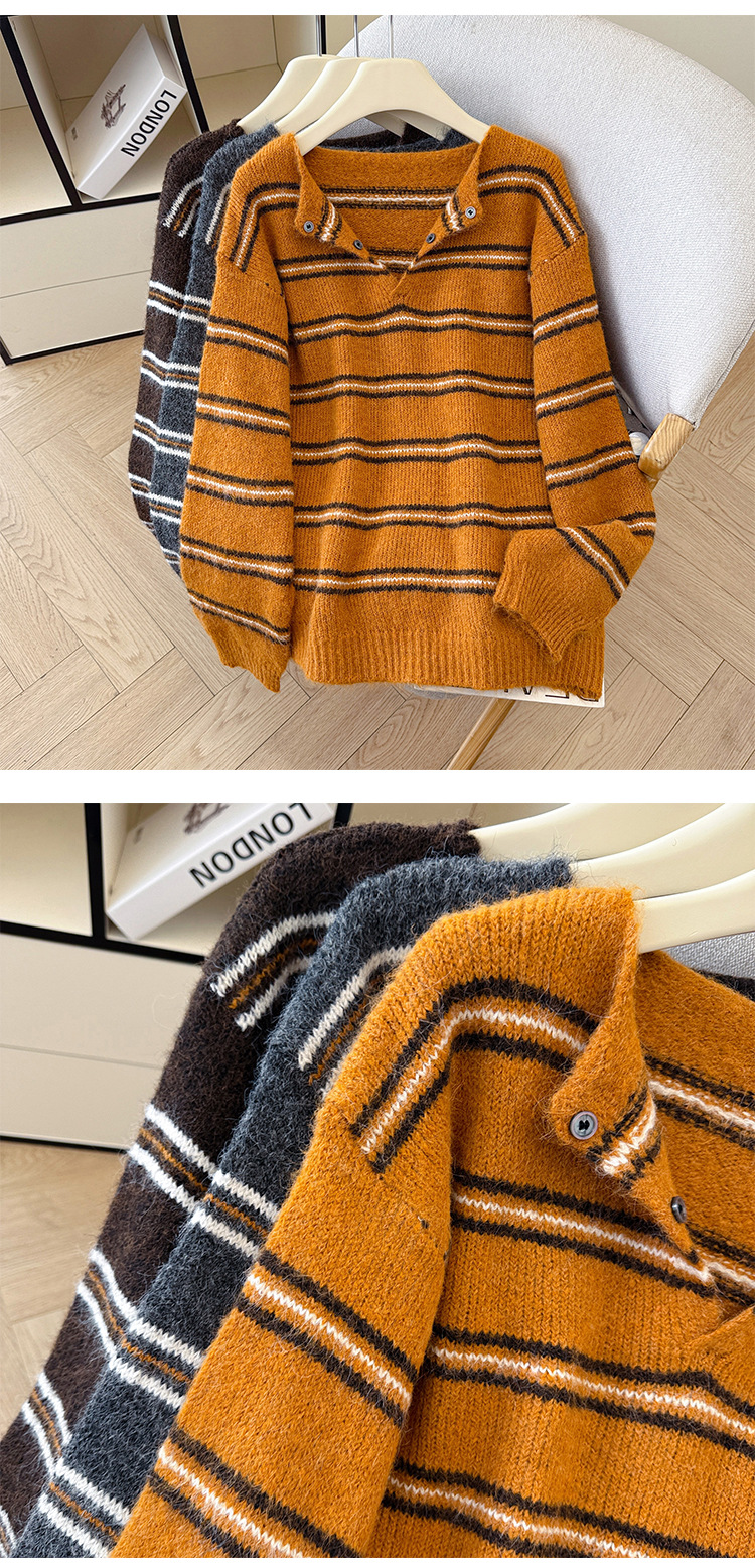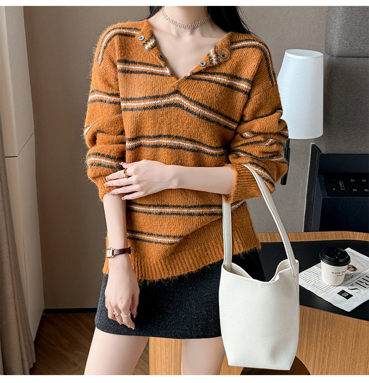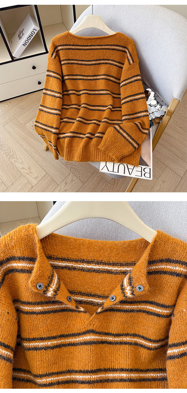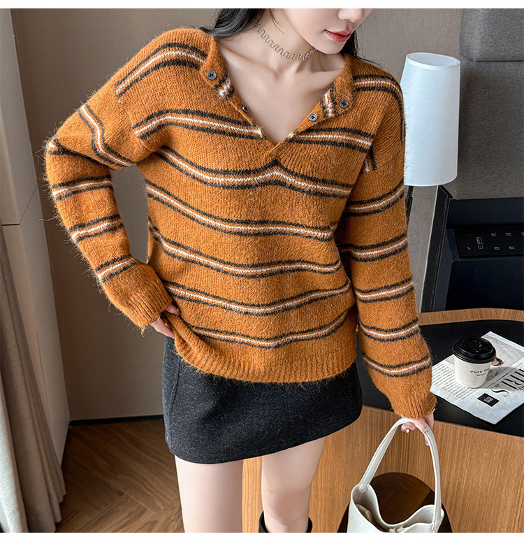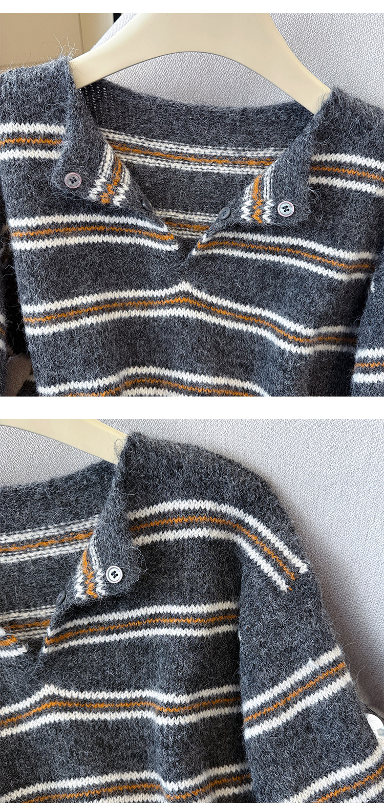 Chic Color-blocked Half-open Collar Knit Sweater for Women