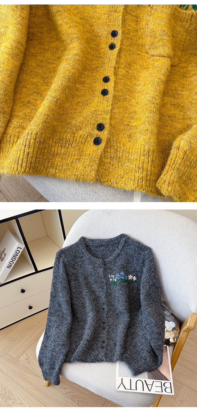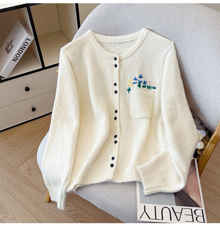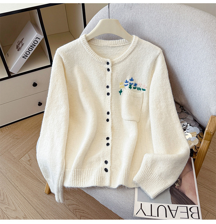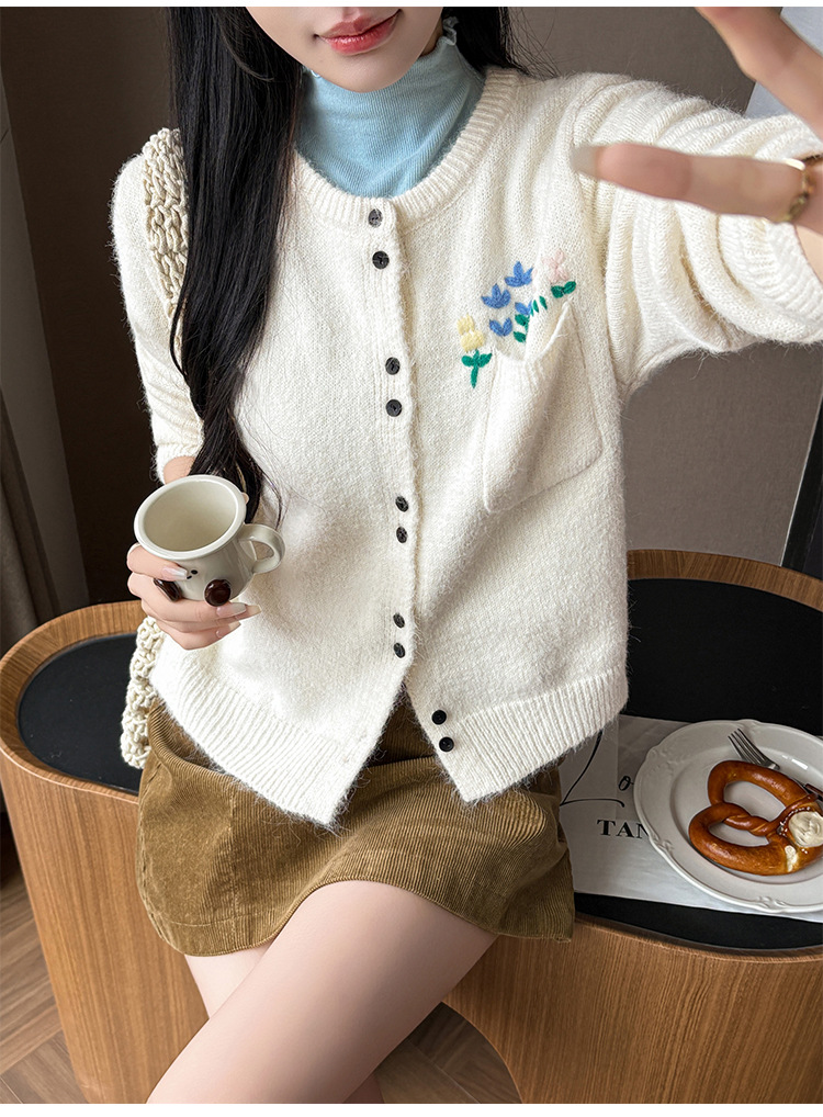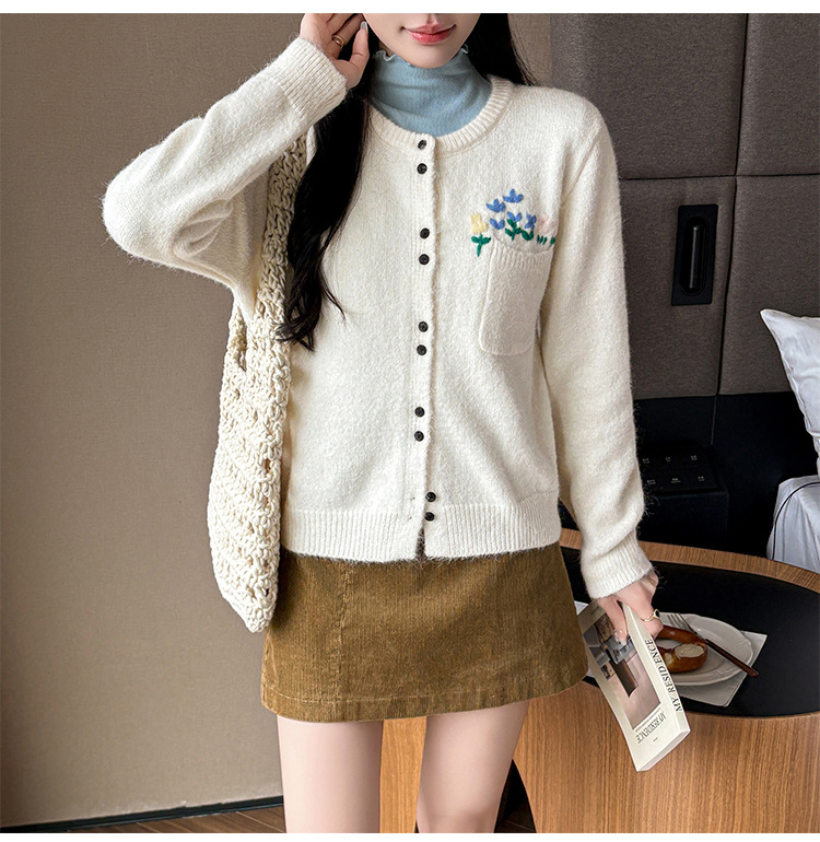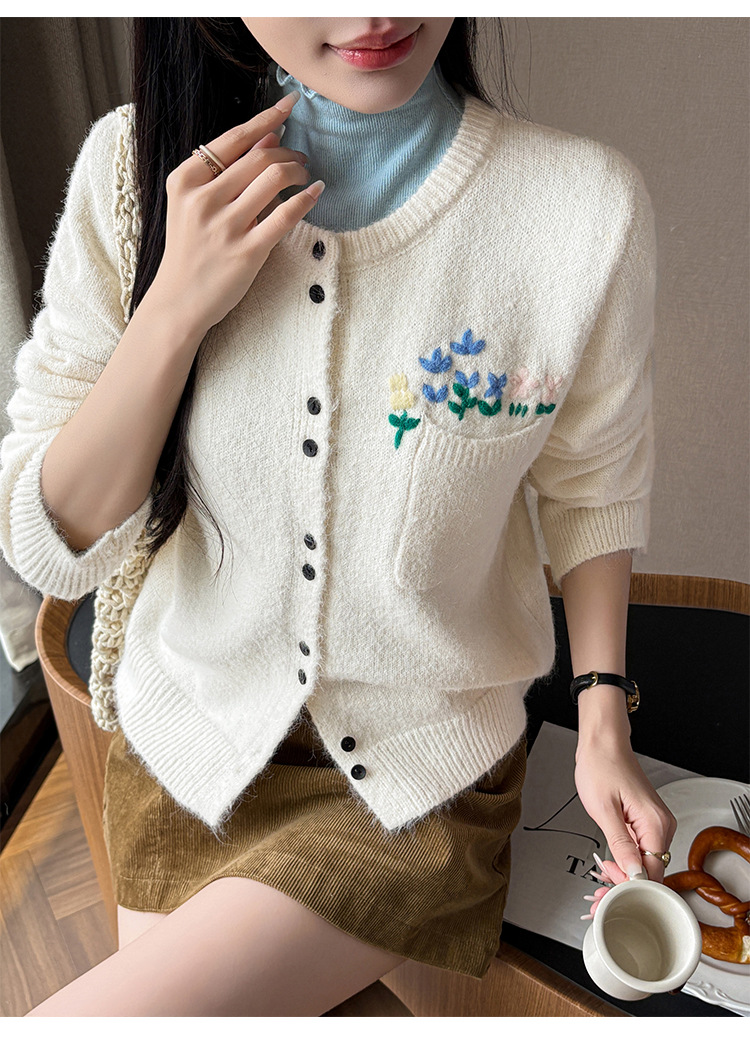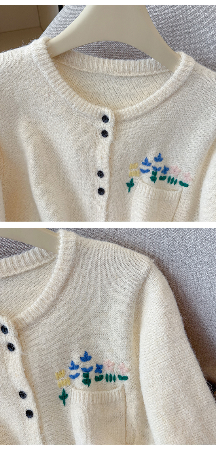 Floral Round Neck Knit Cardigan for Women