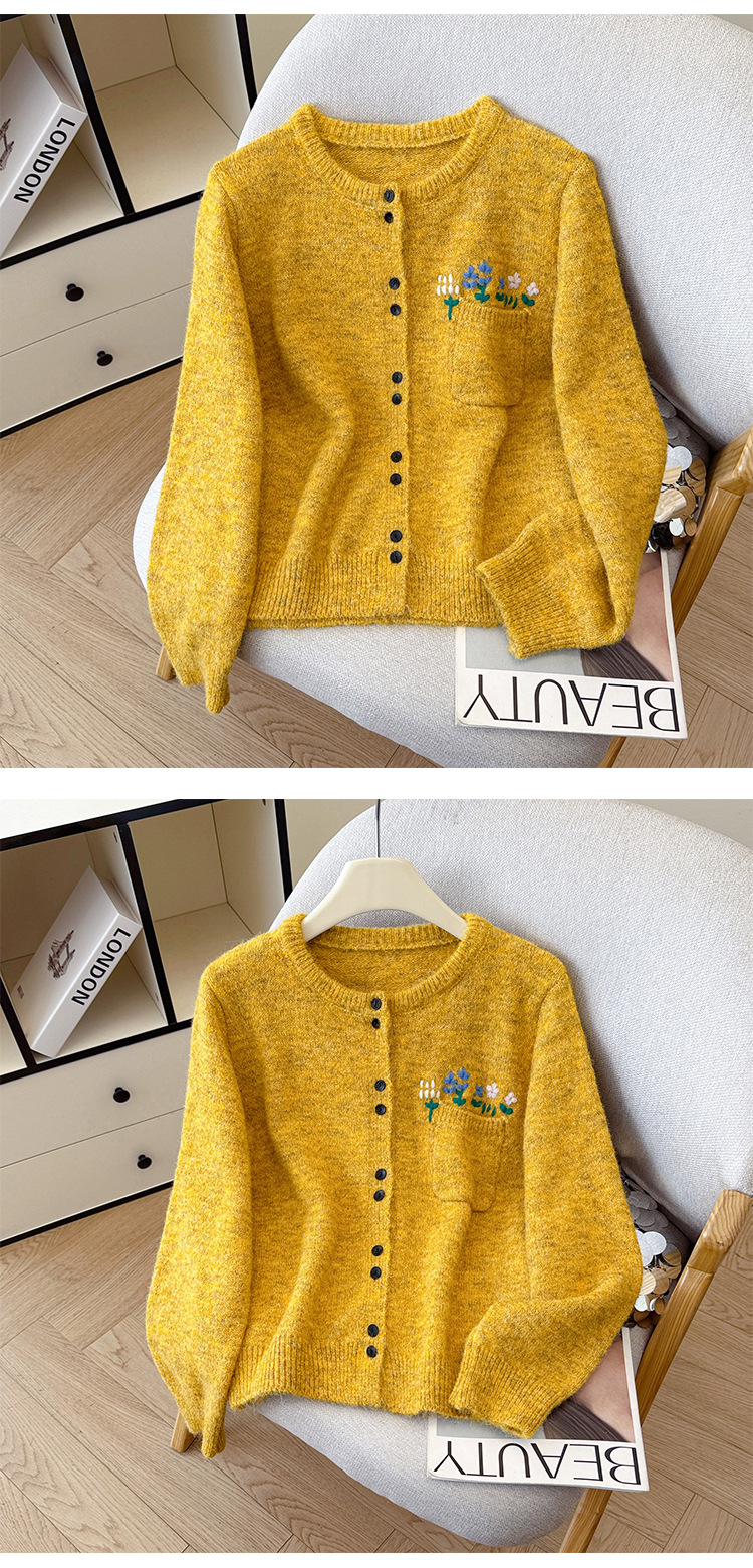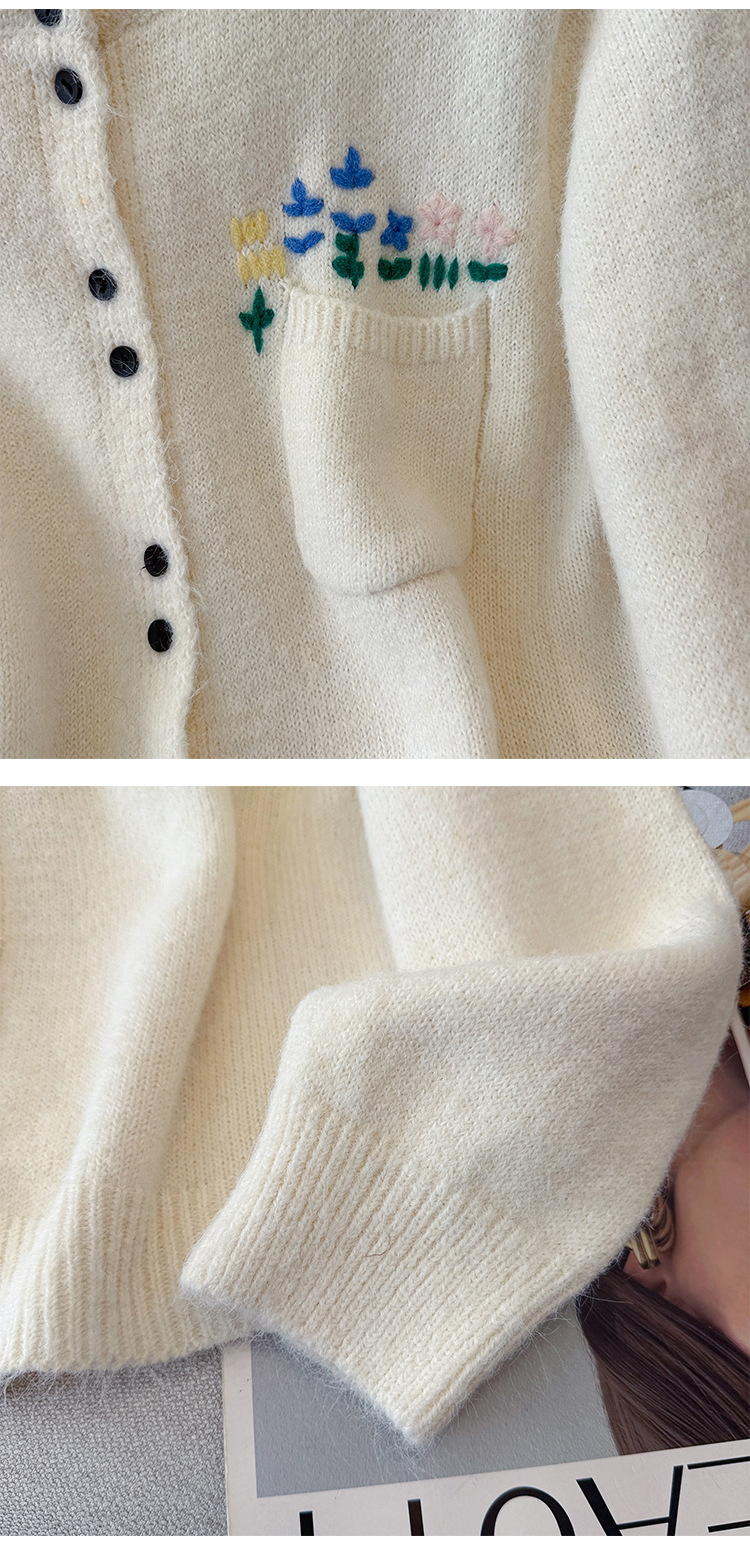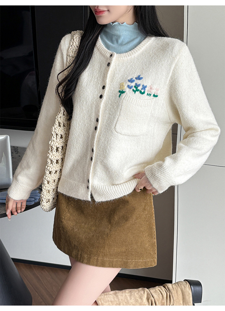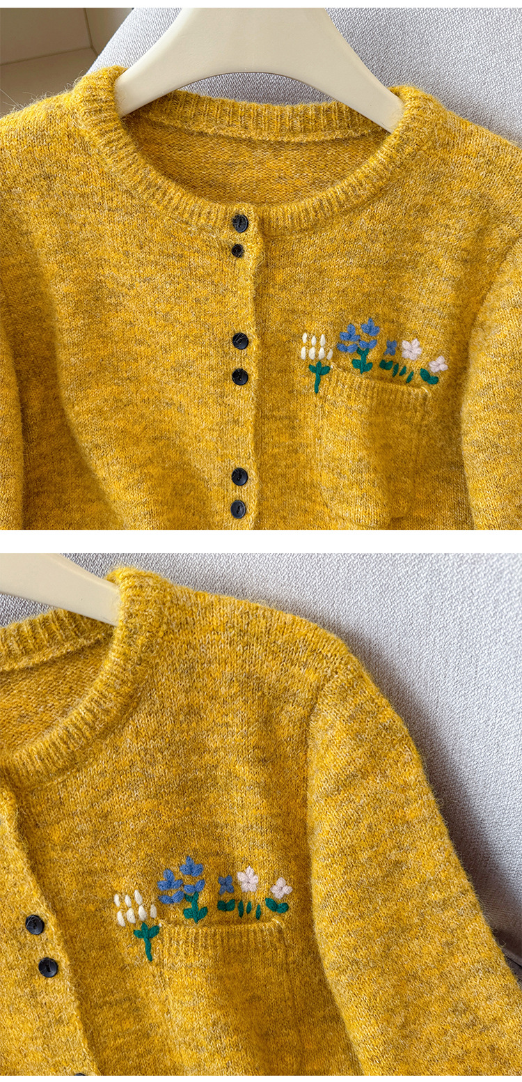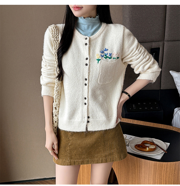 Floral Round Neck Knit Cardigan for Women