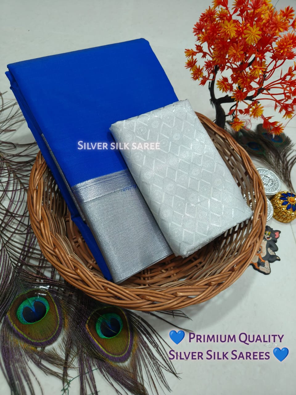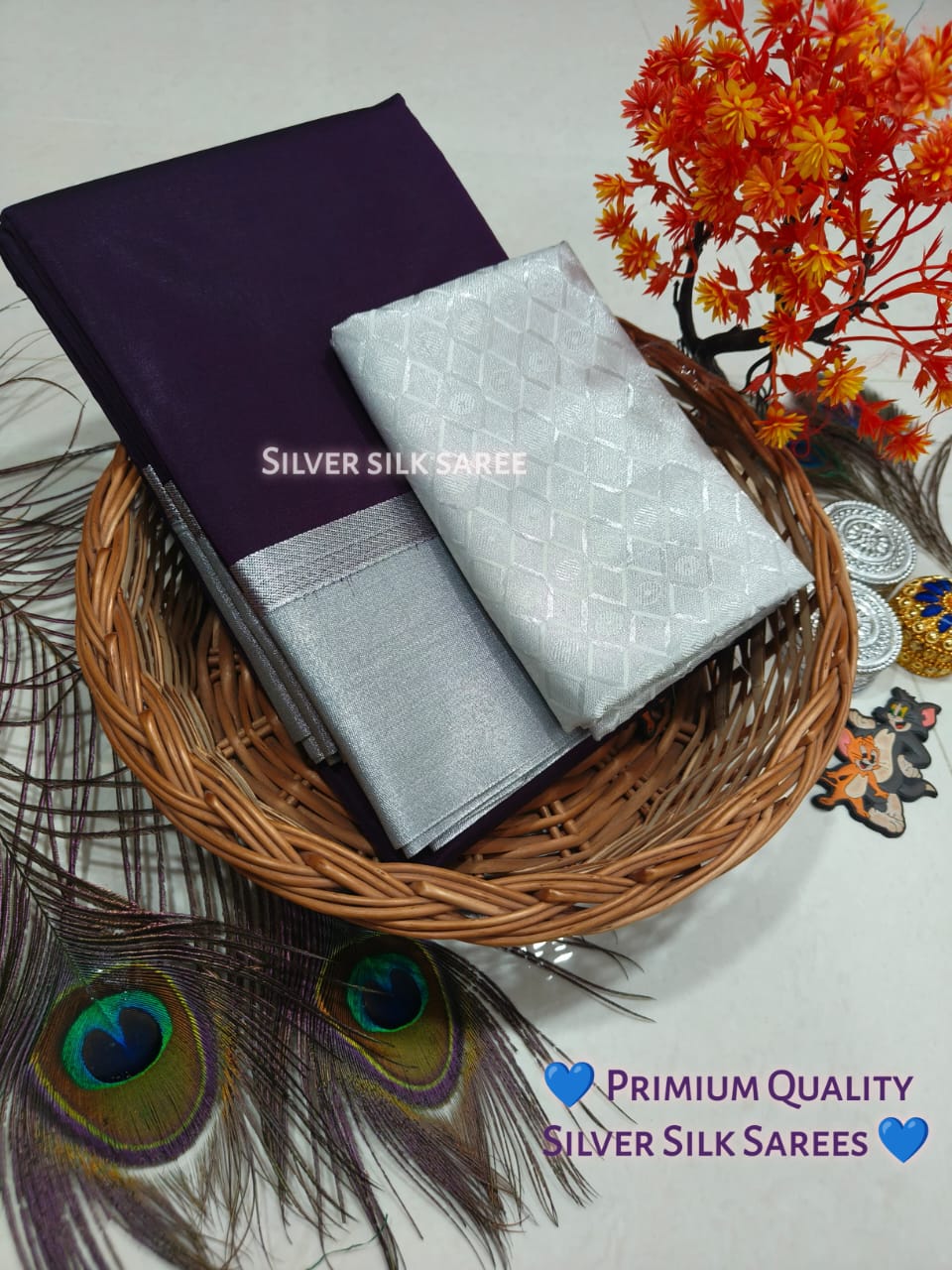 🪼 Offer Price – Elegant Silver Jari Plain Saree 🪼
