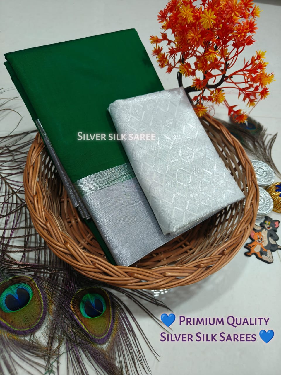 Plain Silver Jari Saree – Double Border with Chit Pallu Work