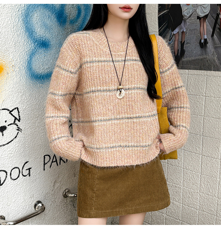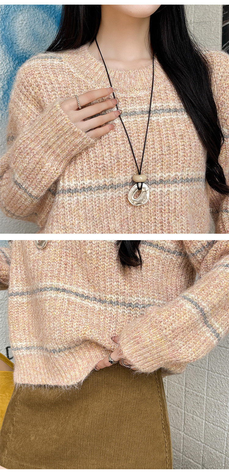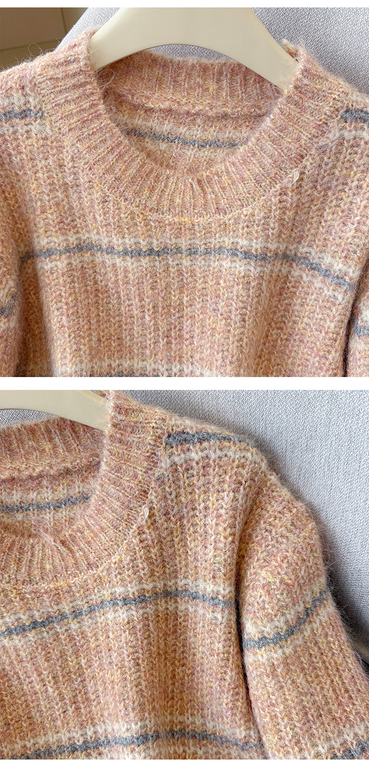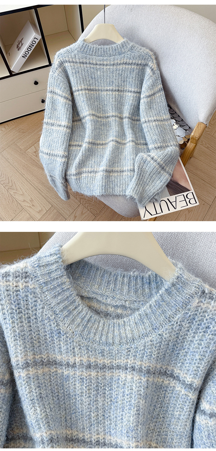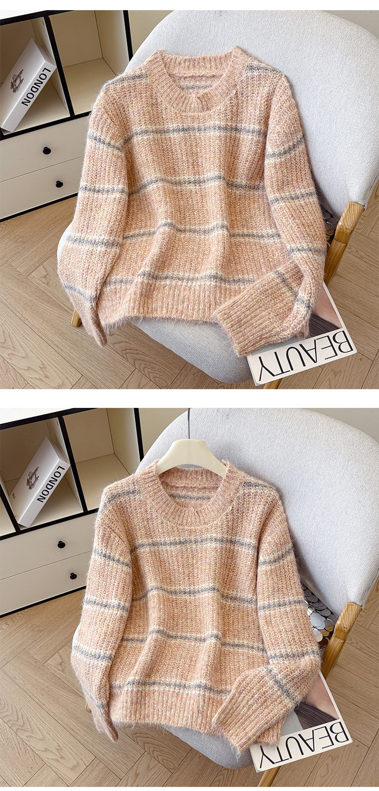 Striped Soft Knit Sweater for Women, Round Neck