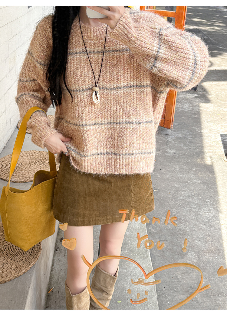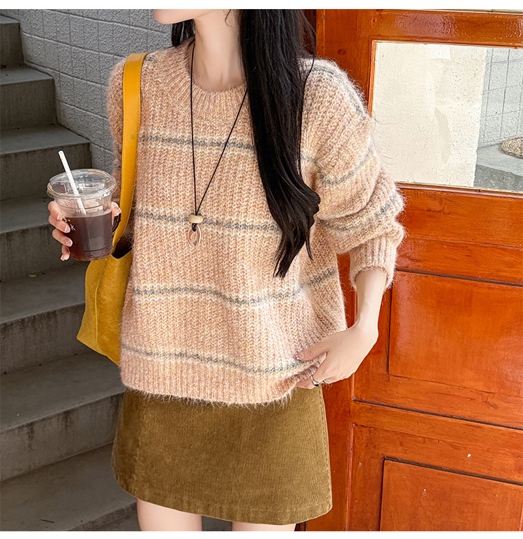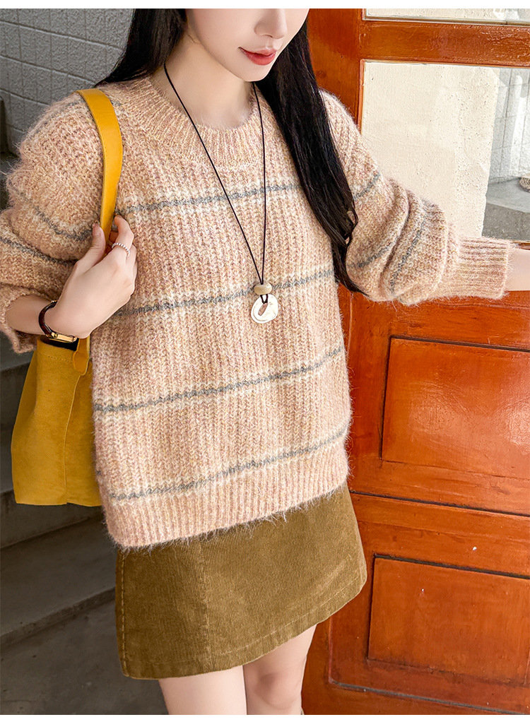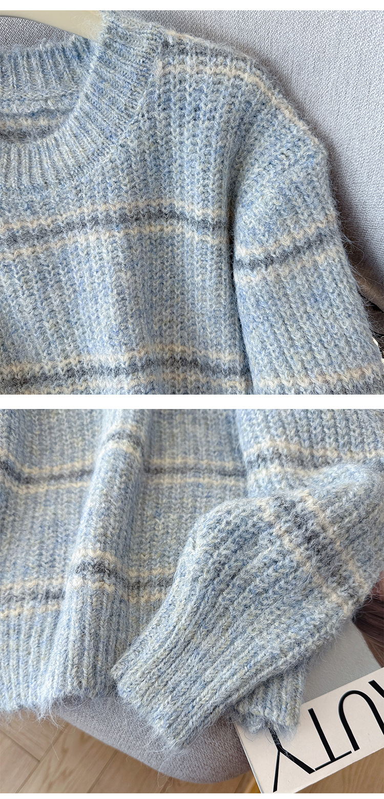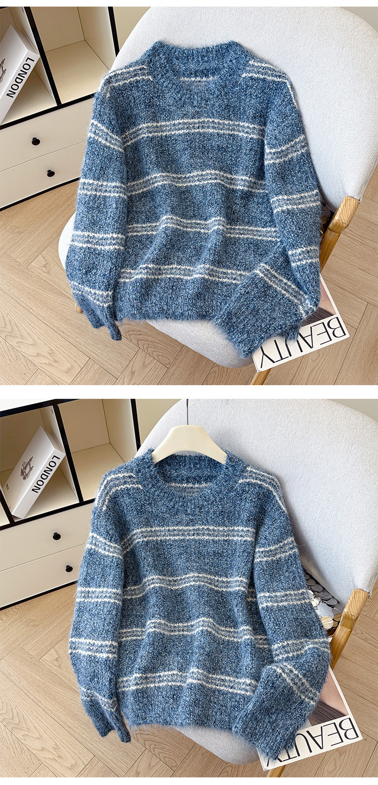 Striped Soft Knit Sweater for Women, Round Neck