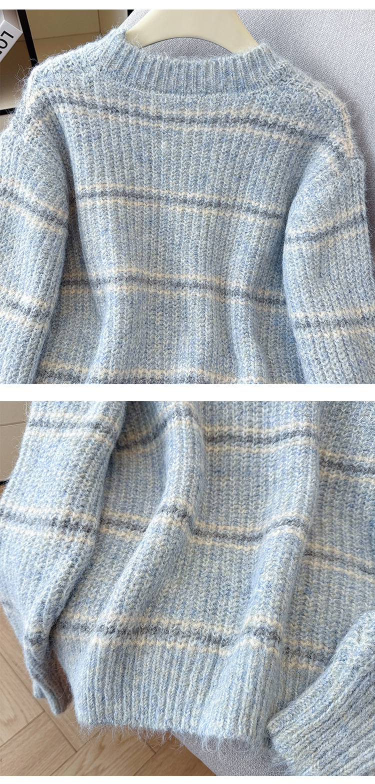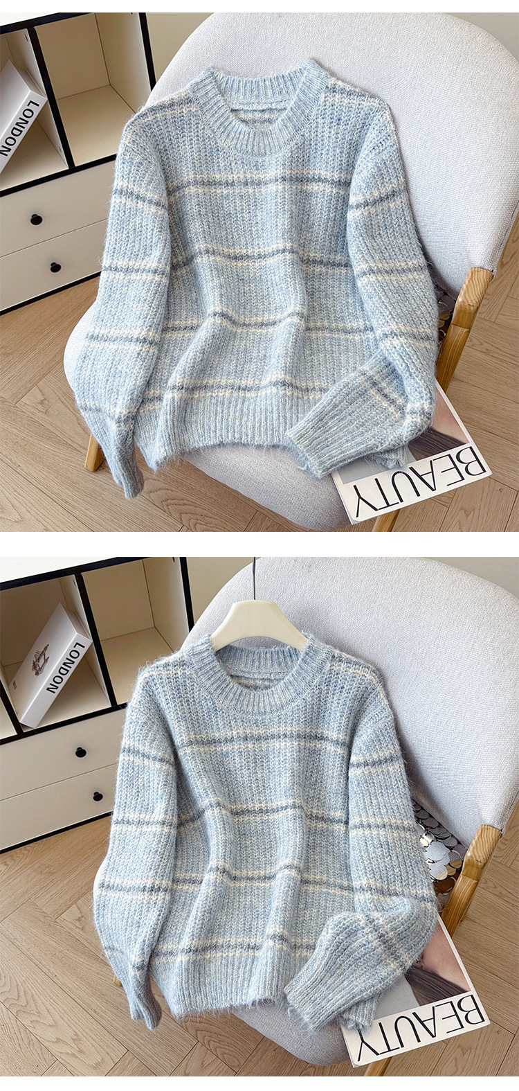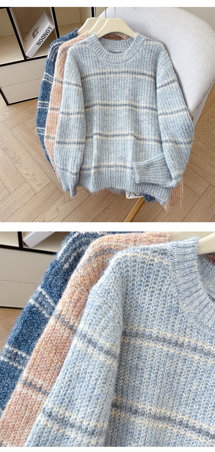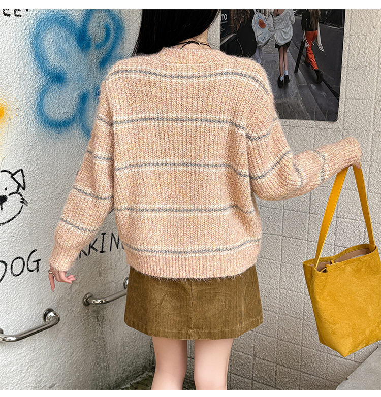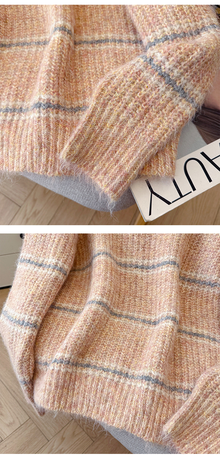 Striped Soft Knit Sweater for Women, Round Neck